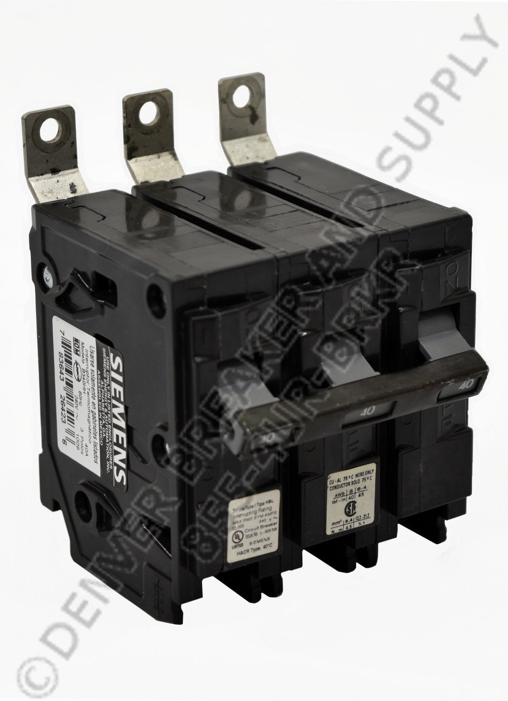 B340HH circuit breaker by Siemens. 40 amps, 65kA@240V AIC Rating, HBL type, 240 volts Molded Case Circuit Breaker with Low Price Guarantee. Re-Certified with Warranty.