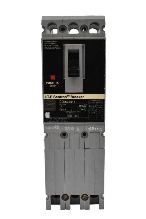 CLE63B015 circuit breaker by Siemens. 15 amps, 200kA@480V AIC Rating, CLE type, 600 volts Molded Case Circuit Breaker with Low Price Guarantee. Re-Certified with Warranty.
