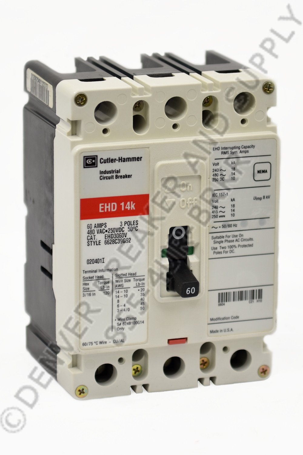 EHD3070 circuit breaker by Cutler Hammer. 70 amps, 14kA@480V AIC Rating, EHD type, 480 volts Molded Case Circuit Breaker with Low Price Guarantee. Re-Certified with Warranty.