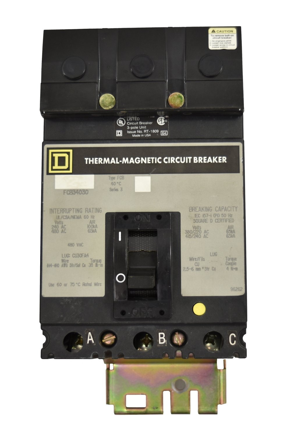 FAB36060 circuit breaker by Square D. 60 amps, 25kA@480V AIC Rating, FAB type, 600 volts Molded Case Circuit Breaker with Low Price Guarantee. Re-Certified with Warranty.