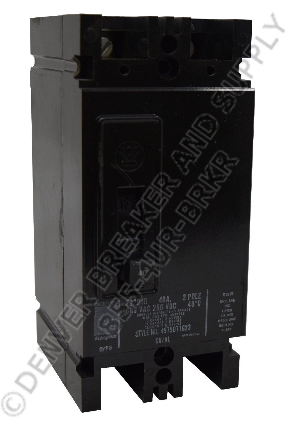 FB2020 circuit breaker by Cutler Hammer. 20 amps, 14kA@480V AIC Rating, FB type, 600 volts Molded Case Circuit Breaker with Low Price Guarantee. Re-Certified with Warranty.