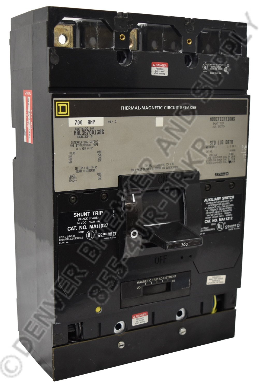 MAL36600 circuit breaker by Square D. 600 amps, 30kA@480V AIC Rating, MAL type, 600 volts Molded Case Circuit Breaker with Low Price Guarantee. Re-Certified with Warranty.