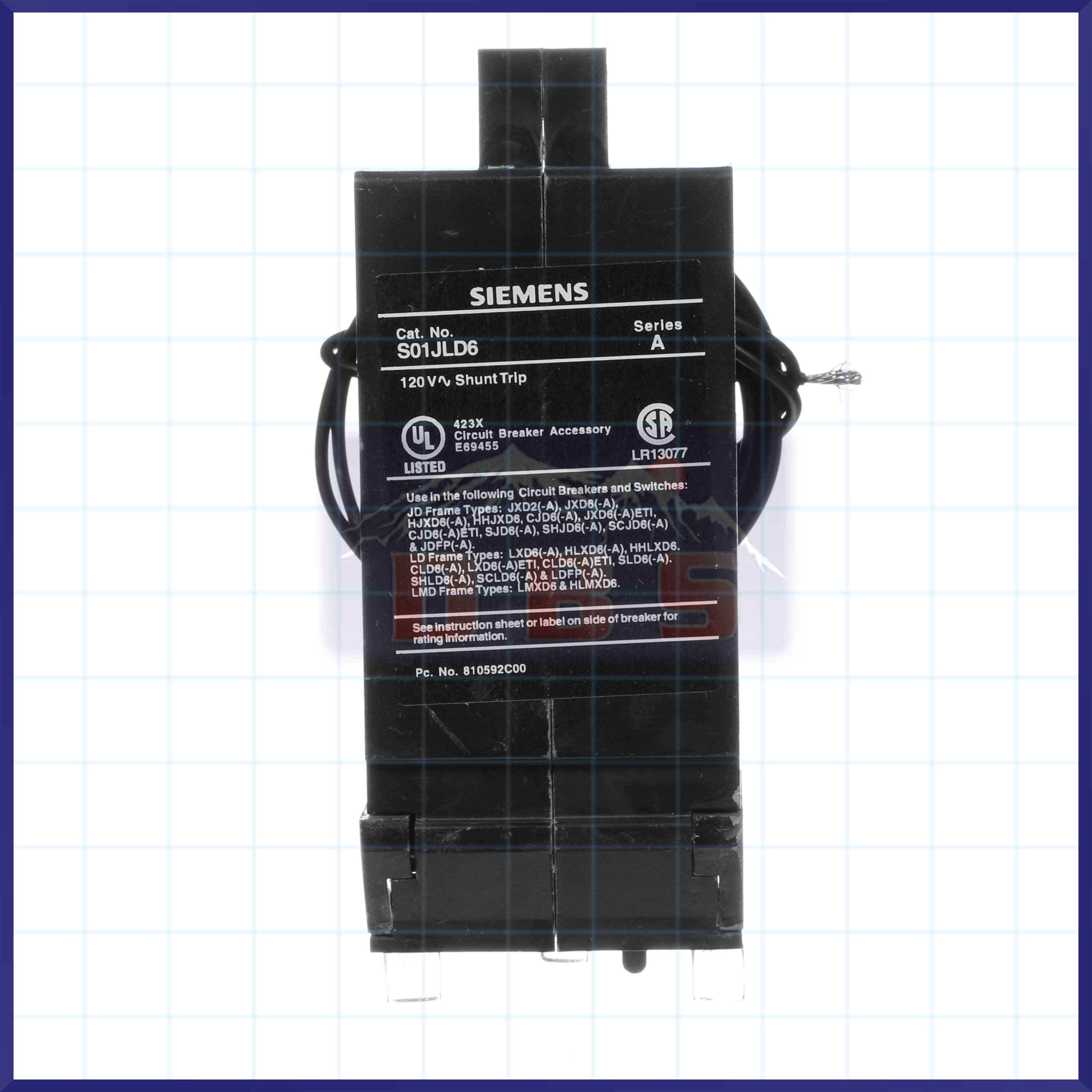 Siemens Shunt trip rated at 120 VAC, is compatible for use with 400 AMP JD, 600 AMP LD, 800 AMP LMD, 400 AMP SJD, 600 AMP SLD frame breakers. Siemens brings reliable circuit breaker accessories suitable for commercial and industrial applications.