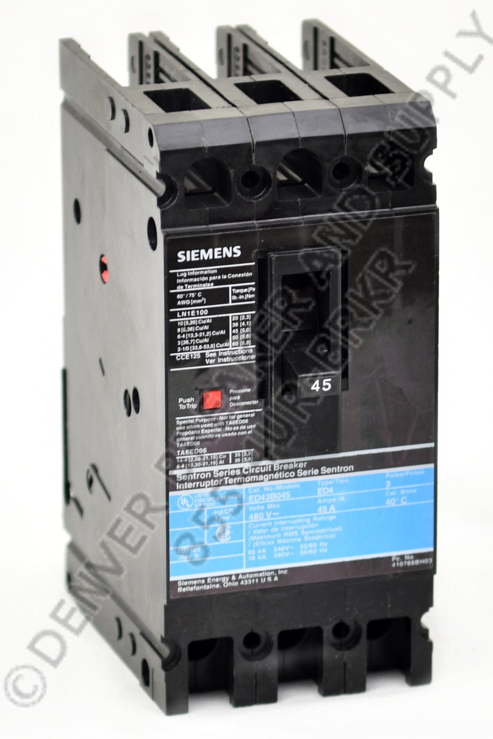 ED63B100 circuit breaker by Siemens. 100 amps, 25kA@480V AIC Rating, ED type, 600 volts Molded Case Circuit Breaker with Low Price Guarantee. New with Warranty.