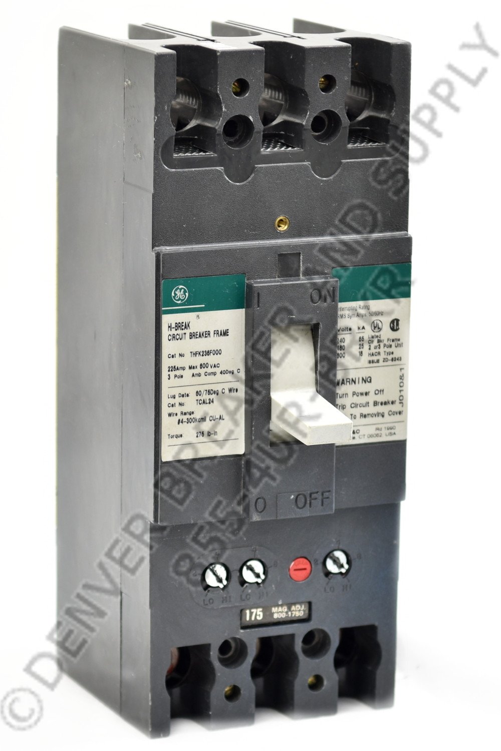THFK236225WL circuit breaker by General Electric. 225 amps, 25kA@480V AIC Rating, THFK type, 600 volts Molded Case Circuit Breaker with Low Price Guarantee. Re-Certified with Warranty.