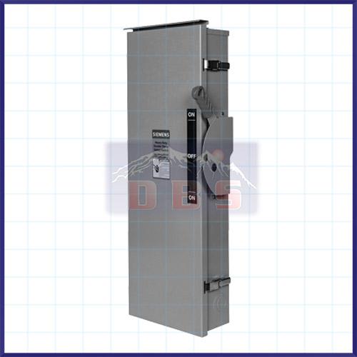 Siemens 3P Non-fusible heavy-duty double throw safety switch rated at 600 VAC/250 VDC and 800 AMP, allows easy transferring of loads from one power source to another. Integrated with visible blade, quick make-and-break action, this double-throw switch of