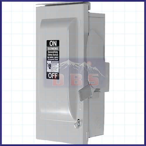Siemens Type VBII 3P 3 fuse fusible general-duty safety switch rated at 240 VAC/250 VDC and 400 AMP, ensures equipment protection and enhanced personnel safety. Integrated with visible blade, quick make-and-break action, this switch offers enhanced switc